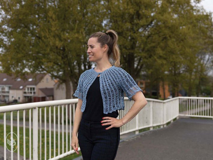Durable bolero, gehaakt in open patroon van het garen Durable Starlux.