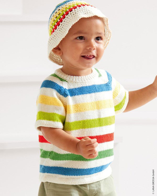 Lana grossa moed met vrolijk gekleurde strepen, gehaakt van het garen Lana Grossa Elastico.