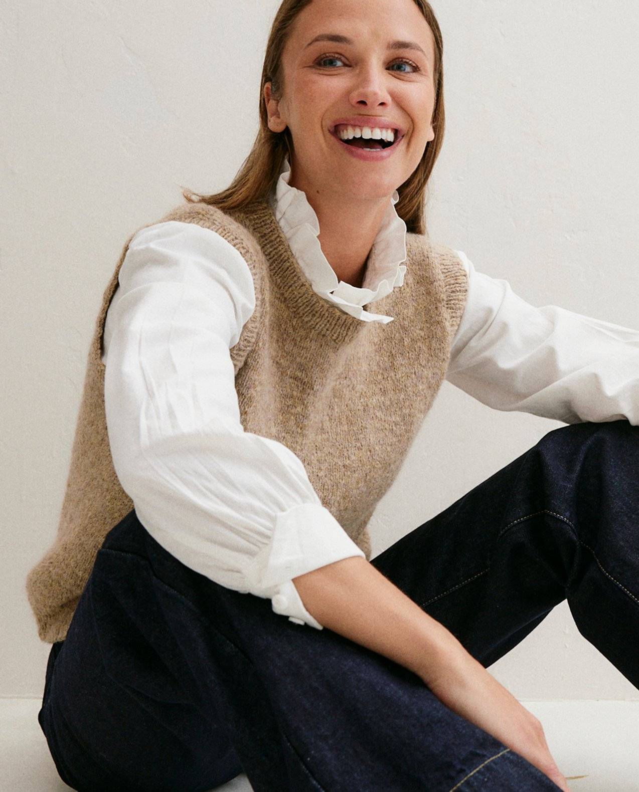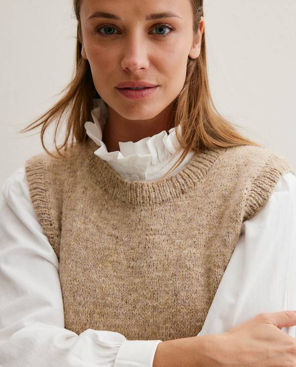 Phildar breipatroon Olive, mouwloze trui gebreid in tricotsteek, Deze heerlijk zachte en luxe spencer, is gemaakt van het garen Phil Baby Alpaga.