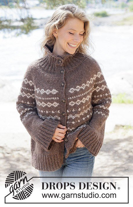 Dit is een oversized gebreid vest in zachte DROPS Air. Van boven naar beneden gebreid met een ronde pas, charmant Scandinavisch patroon, sierlijke punnikrand en hoge hals, combineert dit vest warmte met stijl. Verkrijgbaar in maten XS t/m XXXL.