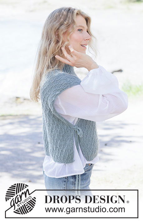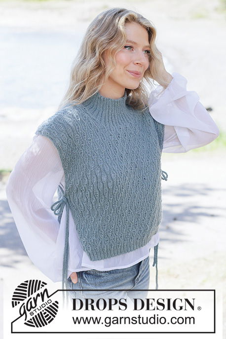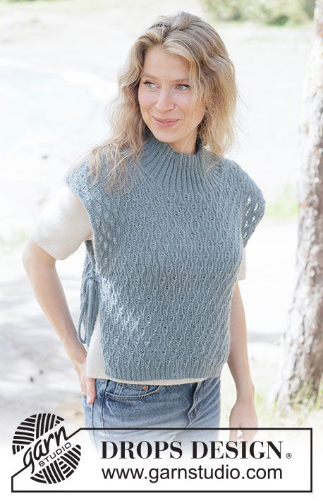 Het Sea Lace Vest is een verfijnde gebreide top van zachte DROPS Alpaca. Van boven naar beneden gebreid met een elegant reliëfpatroon, een hoge hals en subtiele koorden in punnikrand voor een stijlvolle afwerking. Verkrijgbaar in maat XS tot XXXL.
