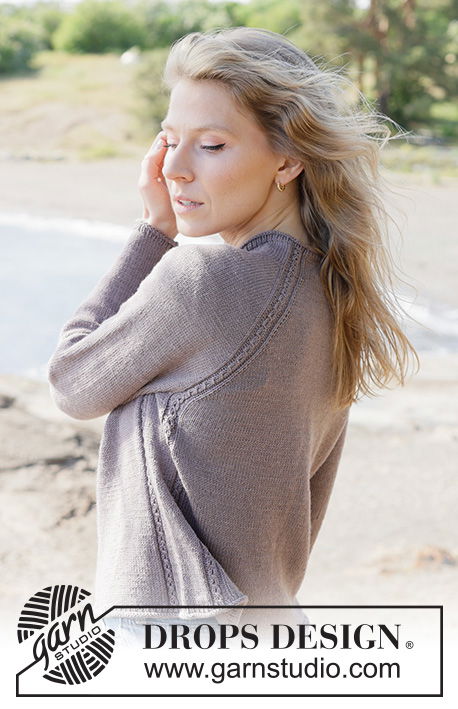 "Sunday Mist Sweater" van Drops wordt van boven naar beneden gebreid in het zachte DROPS Baby Merino garen. Het raglanpatroon zorgt voor een mooie pasvorm, terwijl de delicate kantdetails de trui een dromerige uitstraling geven. De rolranden langs hals, mouwen en onderkant maken het geheel speels en modern.