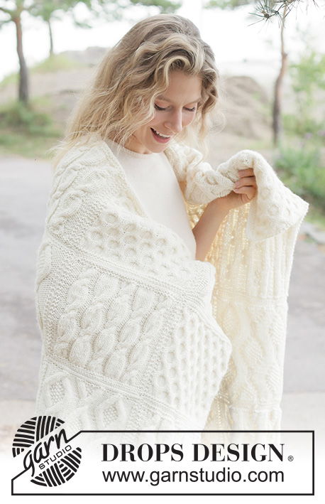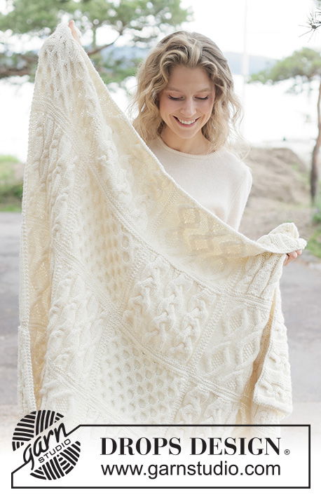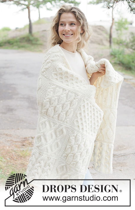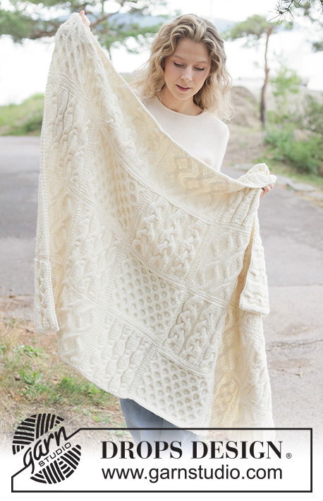 - Design: Een deken opgebouwd uit 24 afzonderlijke gebreide vierkanten, met variërende kabelpatronen (A.1 t/m A.4) en een elegante afwerking.