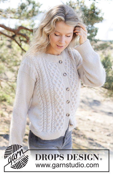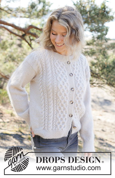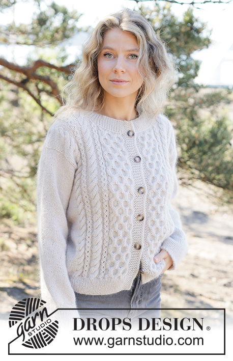 De "Snow Hive Cardigan" van Drops wordt van onder naar boven gebreid in een combinatie van DROPS Nord en DROPS Kid-Silk, of in DROPS Alpaca met DROPS Kid-Silk voor een nog zachtere, luxere afwerking.
