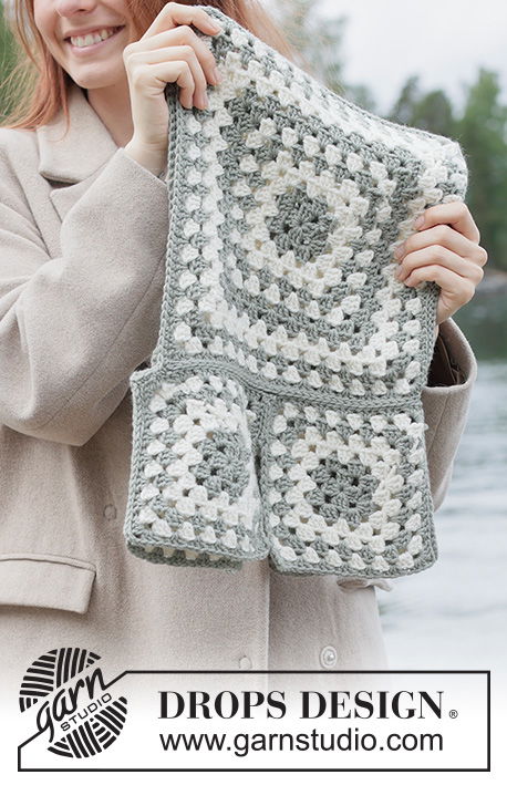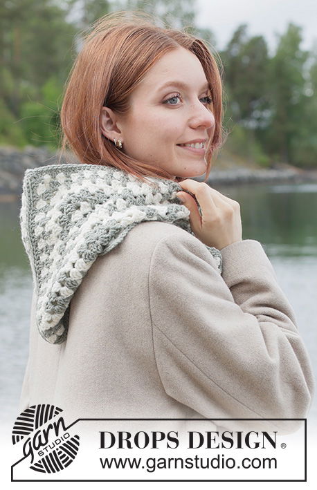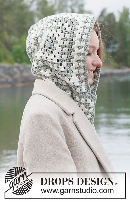 Creëer zelf de trendy Frostglen Hood balaclava, een unieke handwerkcreatie uit de DROPS 261-9 collectie. Dit modieuze accessoire voor dames combineert het klassieke oma-vierkant (granny square) motief met het luxe gevoel van DROPS Daisy merinowol.