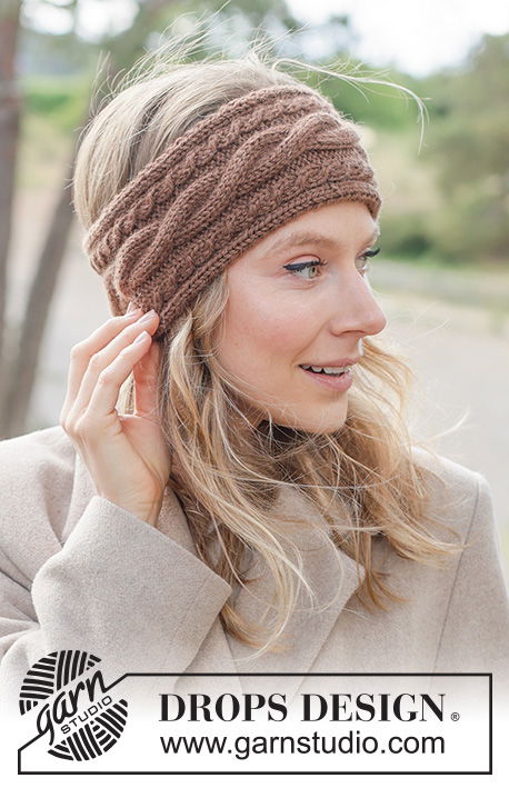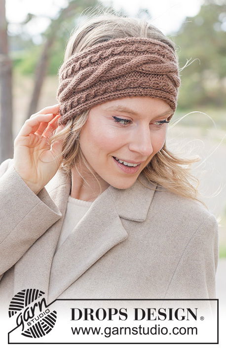 Drops breipatroon hoofdband met kabelpatroon. Het werk wordt heen en weer gebreid van het garen Drops Nepal.