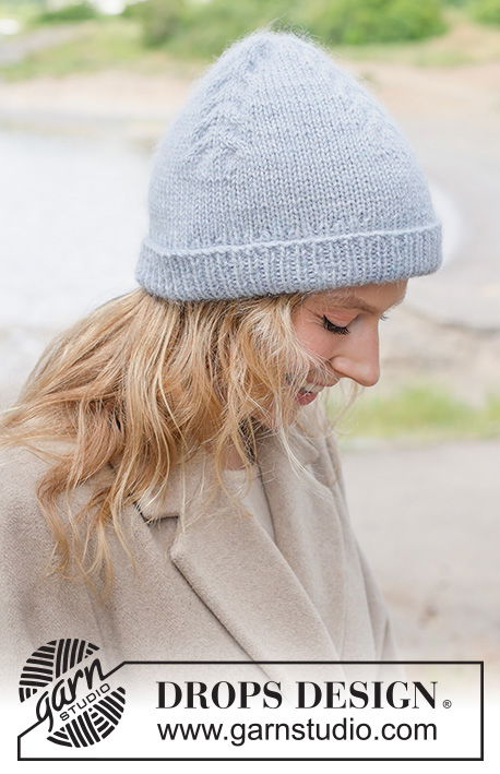 Drops breipatroon damesmuts met subtiele kabels. Het werk wordt van boven naar beneden gebreid van het garen Drops Lima en Drops Kid Silk.