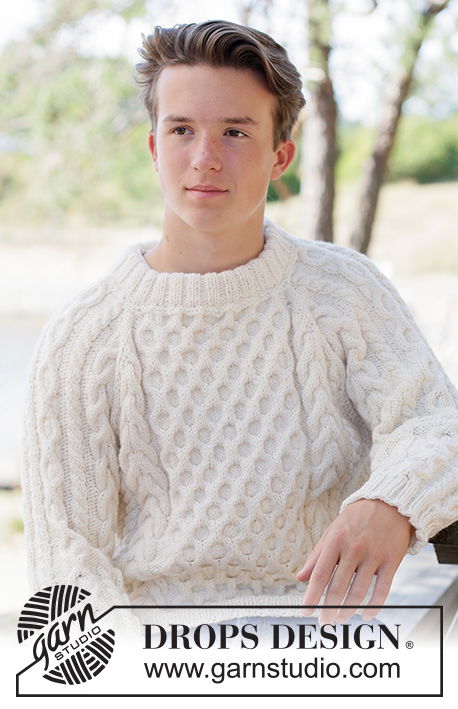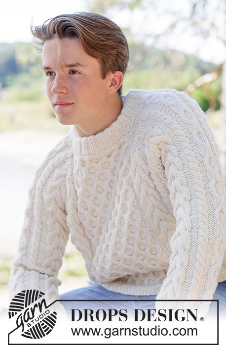 Breipatroon Gebreide herentrui met kabels en raglan van zuivere wol