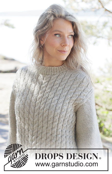 Met het gratis breipatroon voor de Soft Spire Sweater / DROPS 263-28 creëer je een stijlvolle damestrui. Het lijf wordt in de rondte gebreid tot aan de armsgaten, waarna de voor- en achterpanden apart worden afgewerkt. De prachtige kabels geven het werk een rijke textuur, terwijl de mouwen van boven naar beneden worden ingezet voor een comfortabele pasvorm.