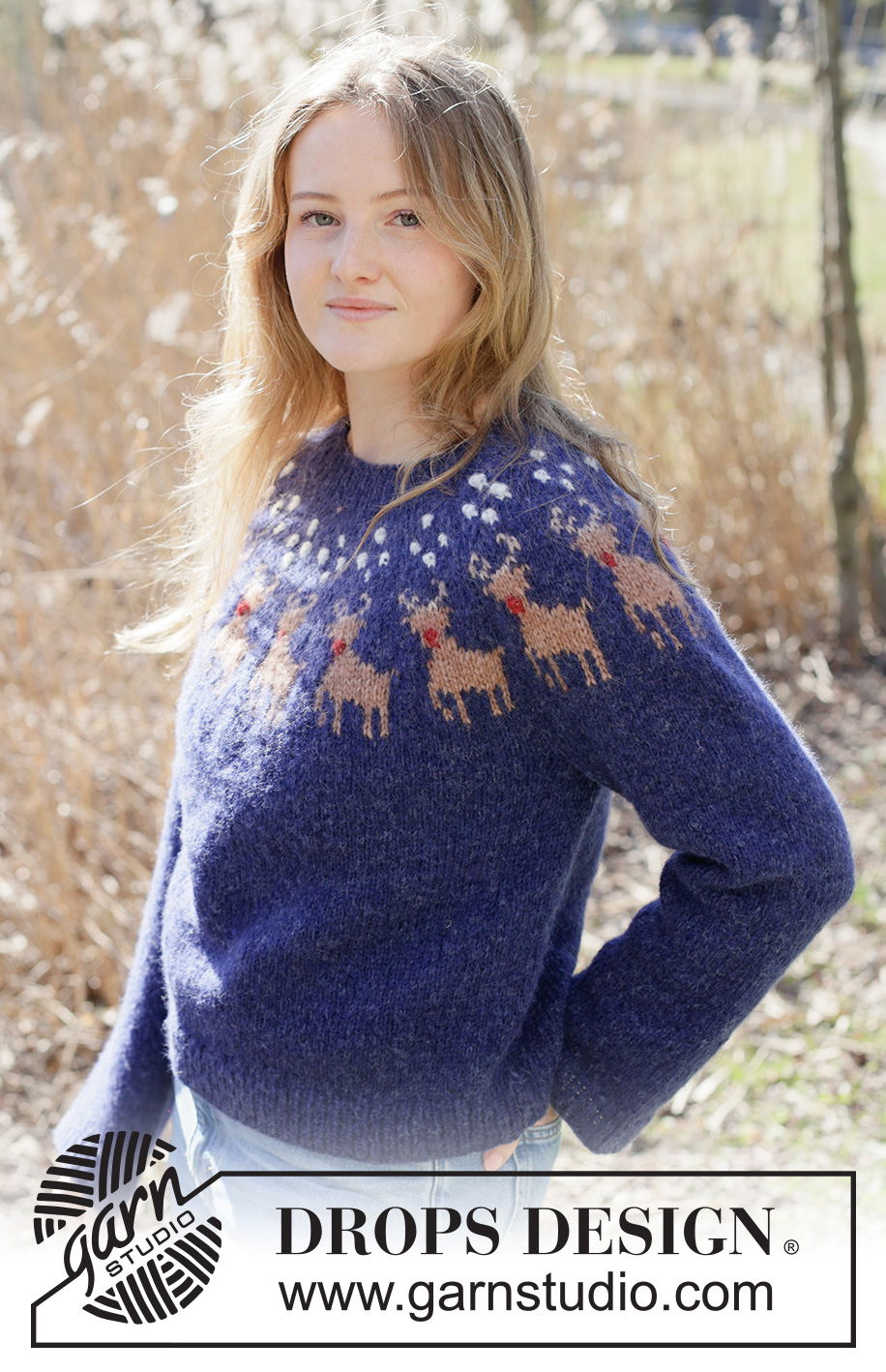 Breipatroon Gebreide kersttrui met rendier in zachte DROPS Air