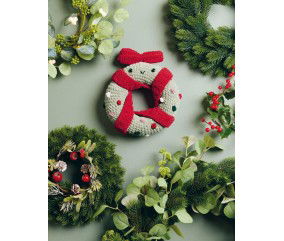 Rico haakpatroon kerstkrans met strik en bolletjes. Deze krans met een doorsnee van ca 23 cm, is gehaakt van het heerlijk zachte garen Rico Chenillove