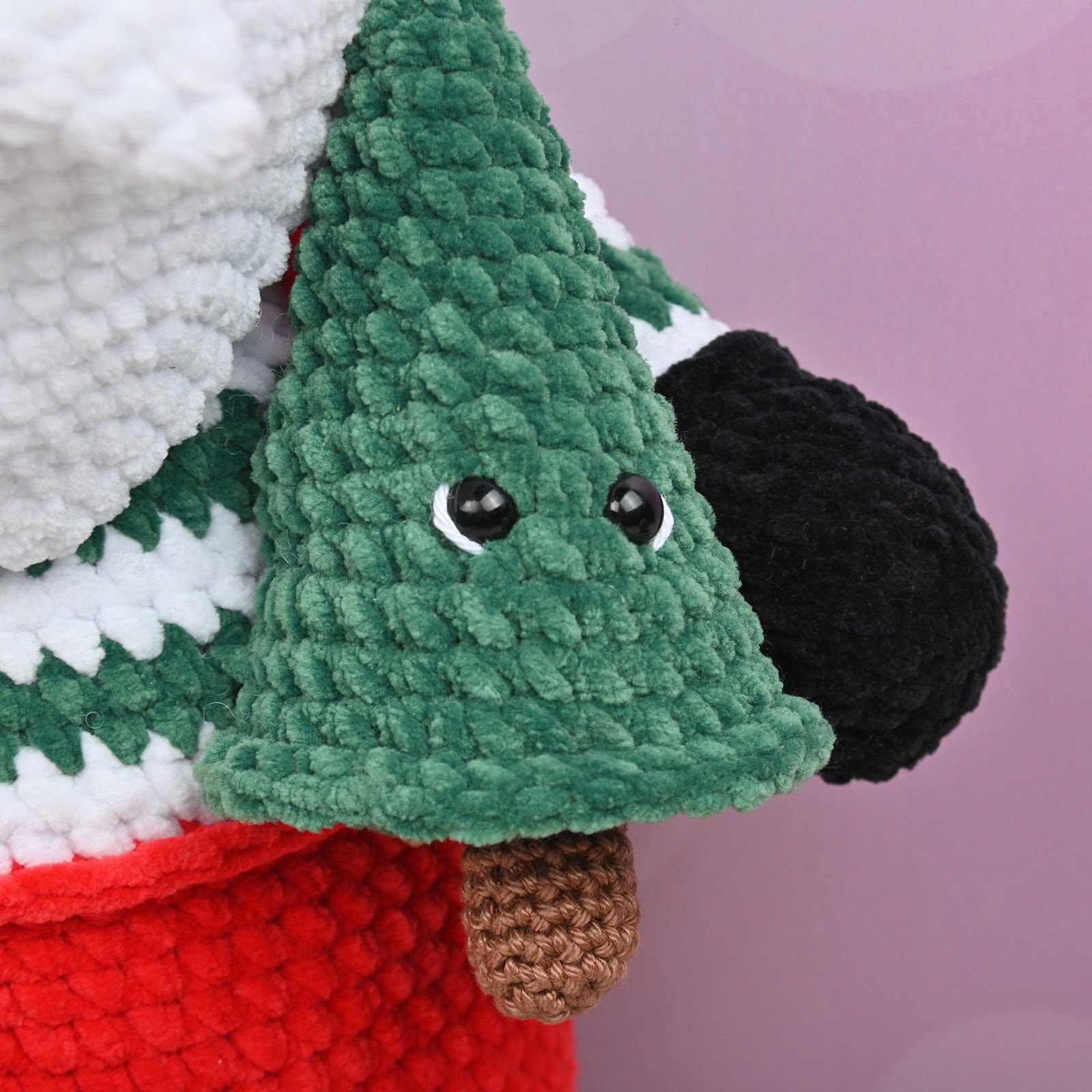 Haakpatoon Kerstman met kerstboompje, gehaakt van het heerlijk zachte garen Durable Velvet.