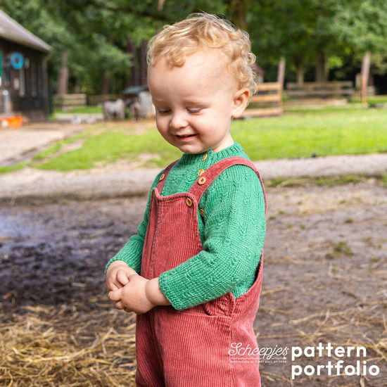 Breipatroon babytrui of peutertrui Jesse Sweater. De Jesse Sweater is een zachte, textuurvolle babytrui met een bladmotief dat prachtig uitkomt in Scheepjes Kindsome. De trui wordt plat van onder naar boven gebreid, met schouderknopen voor gemakkelijk aan- en uittrekken. Het patroon van de Jesse Sweater bevat volledige geschreven instructies, een kabelschema, een werktekening en een maattabel voor vier maten van 0 tot 24 maanden.