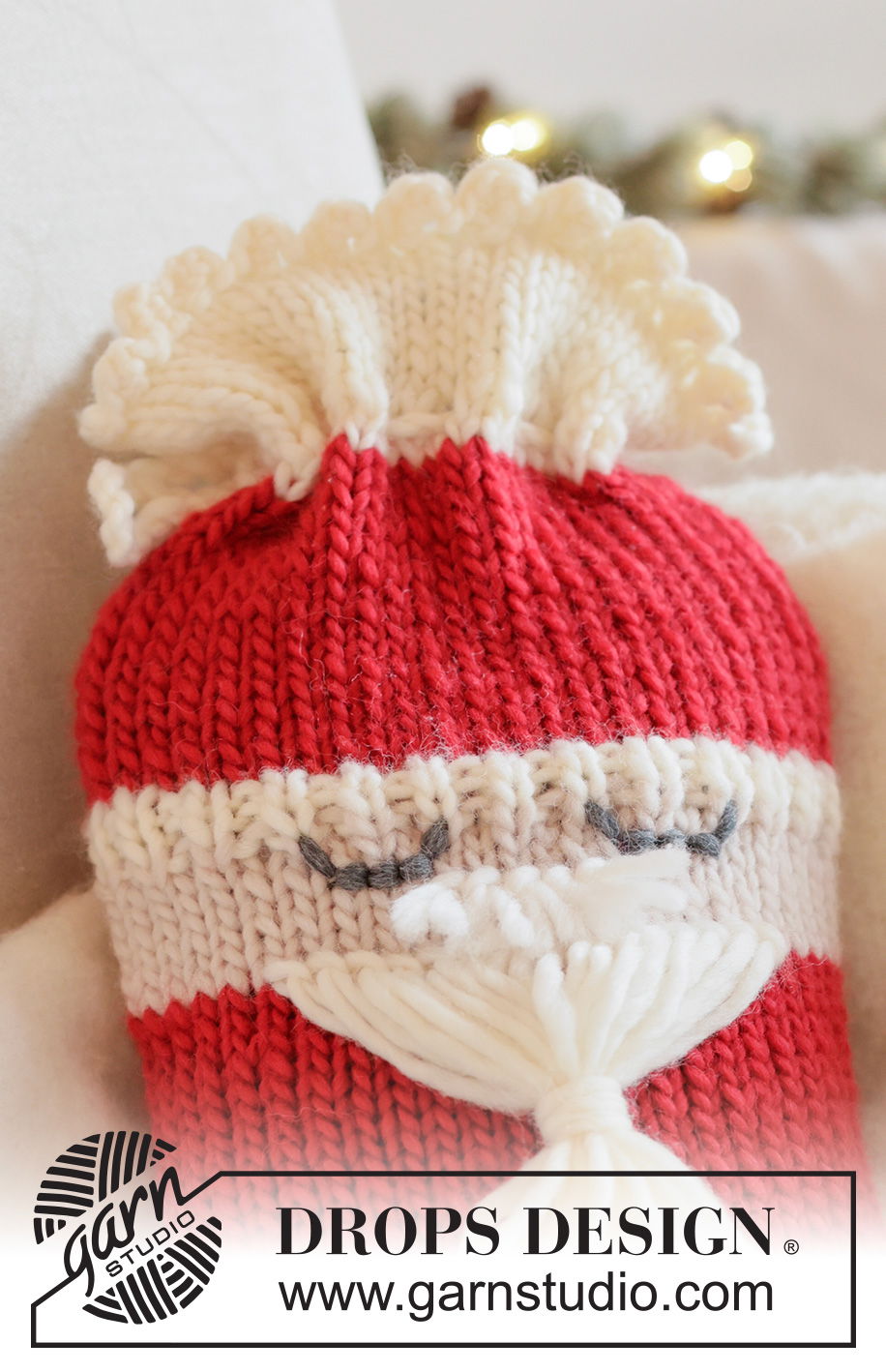 Breipatroon Gebreide Kerstman kruikenzak met DROPS Snow