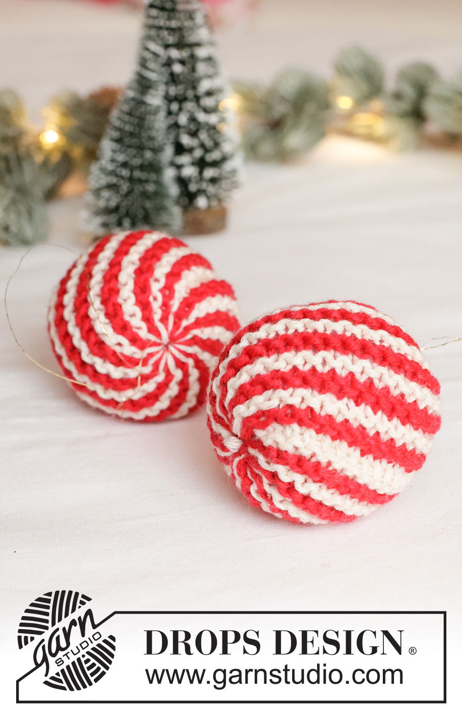 Breipatroon Gebreide kerstbal met spiraal strepen