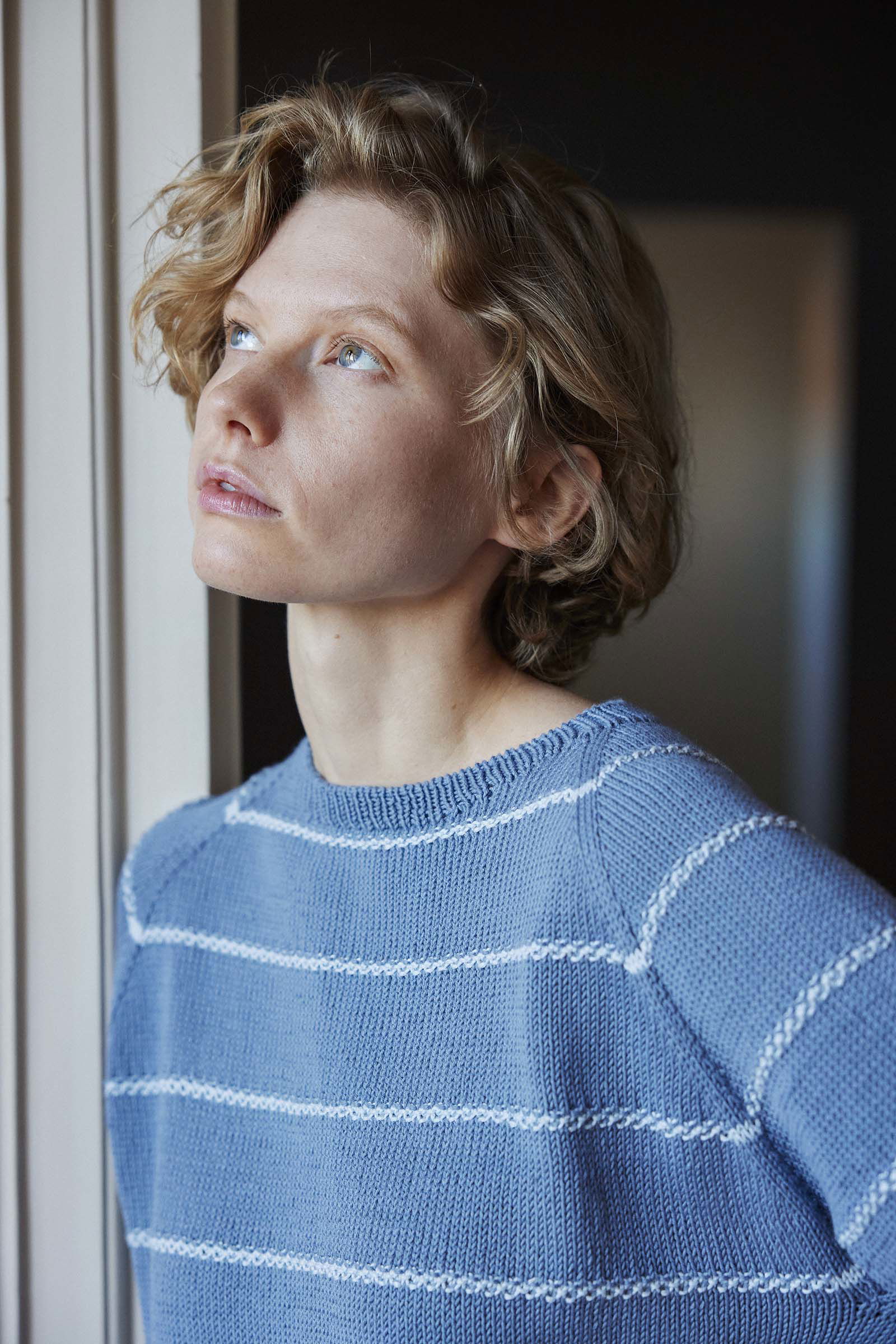 Damestrui Barbara met raglanmouwen, waarbij de dunne strepen doorlopen in voor- en achterpand. Lang Yarns Baby Cotton Naturally Colored is essentieel voor dit ontwerp, niet alleen vanwege zijn uitzonderlijke zachtheid en draagcomfort, maar ook dankzij de natuurlijke, ongeverfde kleuren die de subtiele strepen prachtig accentueren.
