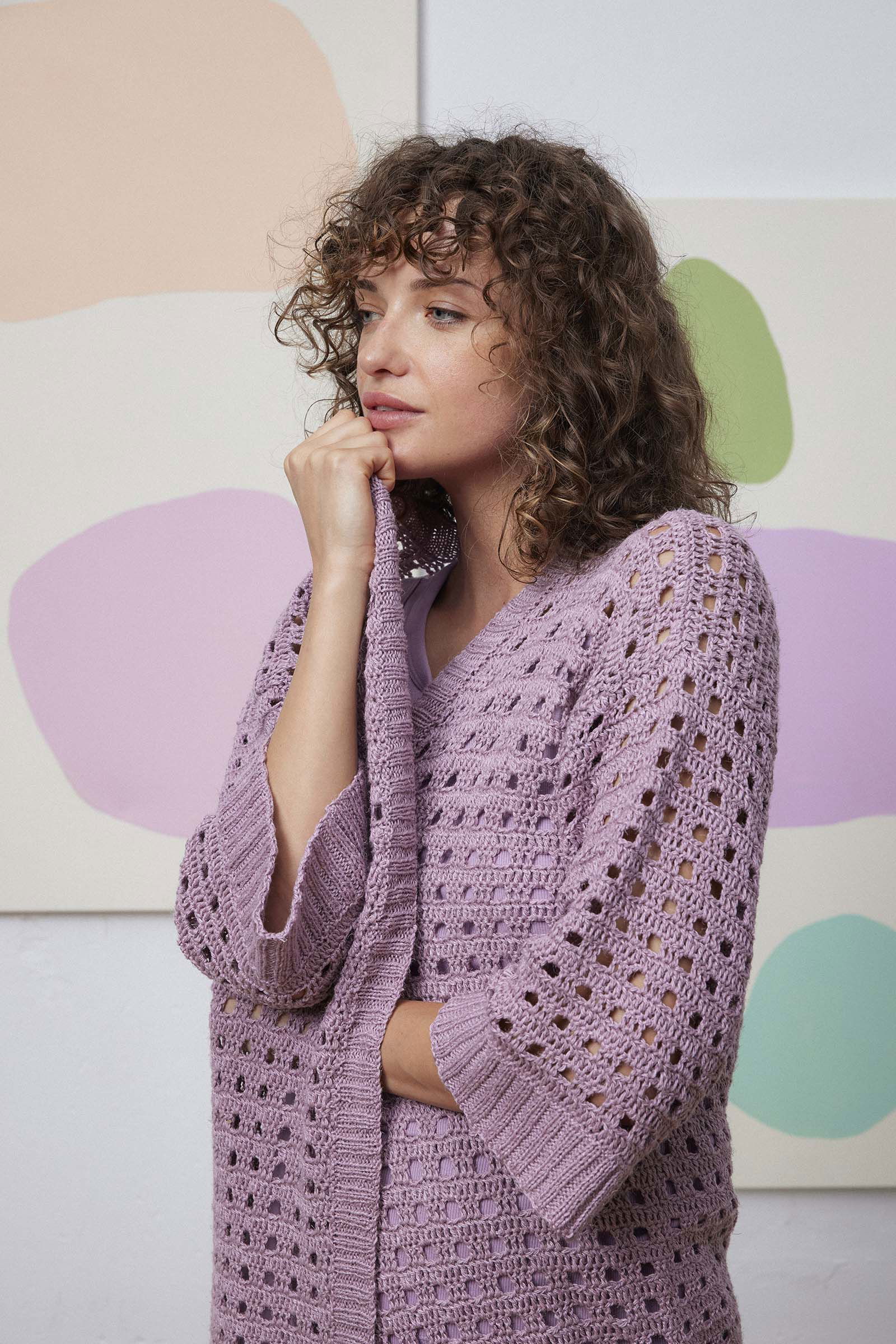 Haakpatroon Lang damesvest Lea met driekwart mouwen