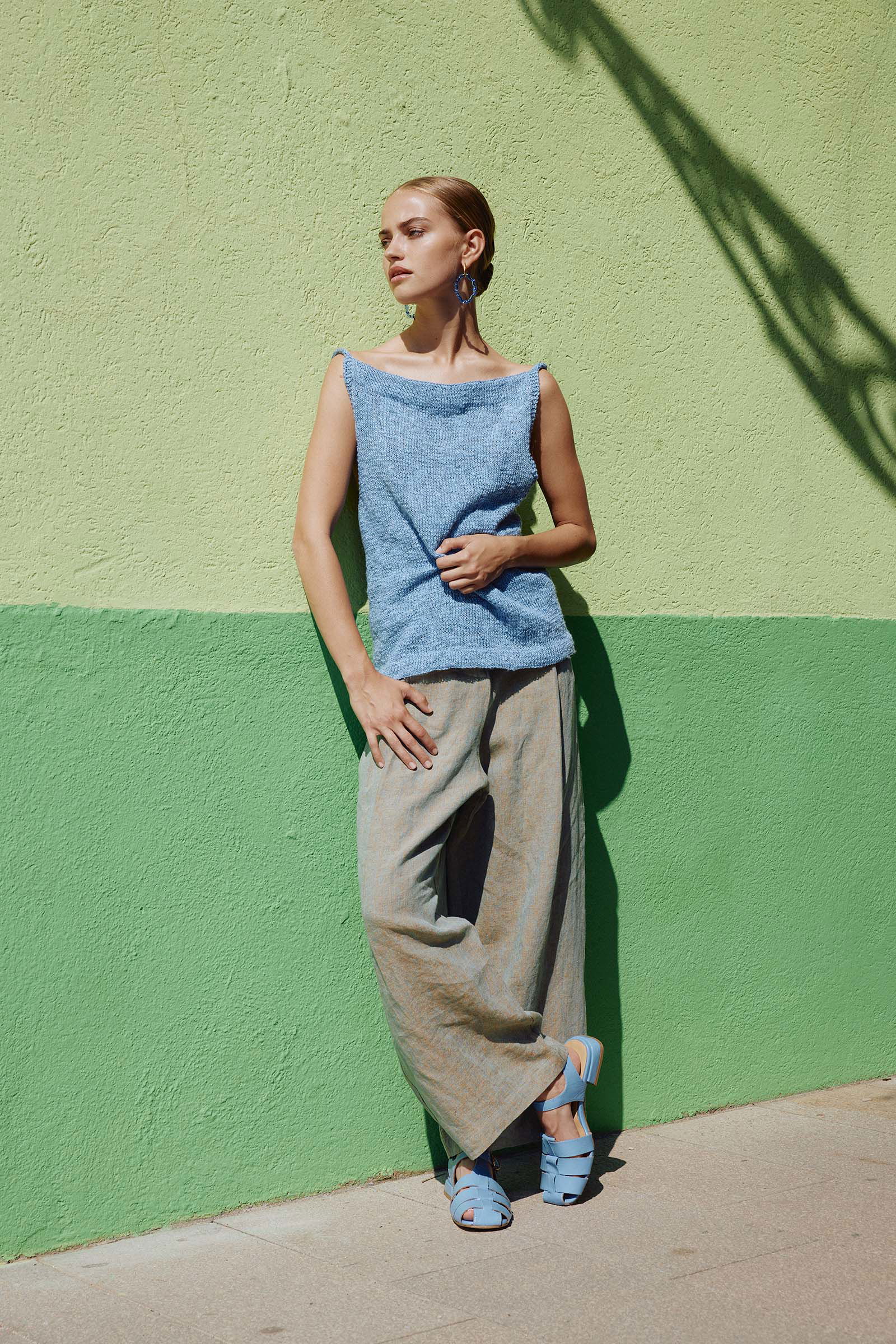 Creëer met de Top Idle Hour een onmisbaar item voor uw garderobe, perfect voor warme dagen en stijlvolle avonden. Dit gebreide rechte hemdje onderscheidt zich door een uniek open achterpand, elegant afgewerkt met een verfijnde striksluiting. Het ontwerp is doordacht met een hoge voorkant en een subtiel lagere achterkant, wat zorgt voor een flatterende pasvorm en hedendaagse uitstraling.