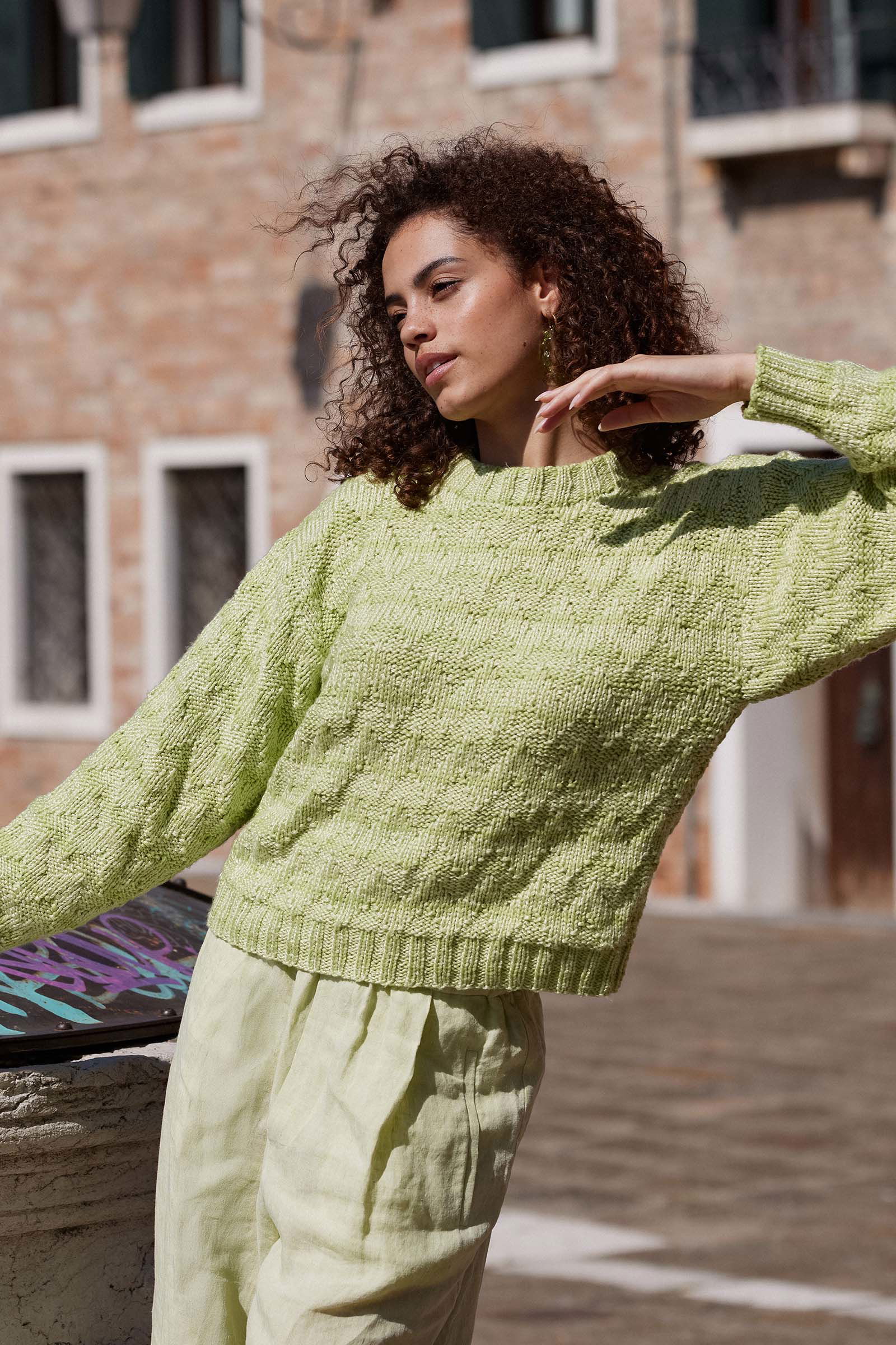 Langyarns breipatroon damestrui met subtiel zigzagpatroon. Met een rustgevende mix van rechte en averechte steken en een garen dat het licht prachtig weerkaatst, zorgt Handmade Indulgence ervoor dat elke steek aanvoelt als een kleine beloning op zich, zonder gedoe. De trui is gebreid van het garen Lang Yarns Wooladdicts Glow.