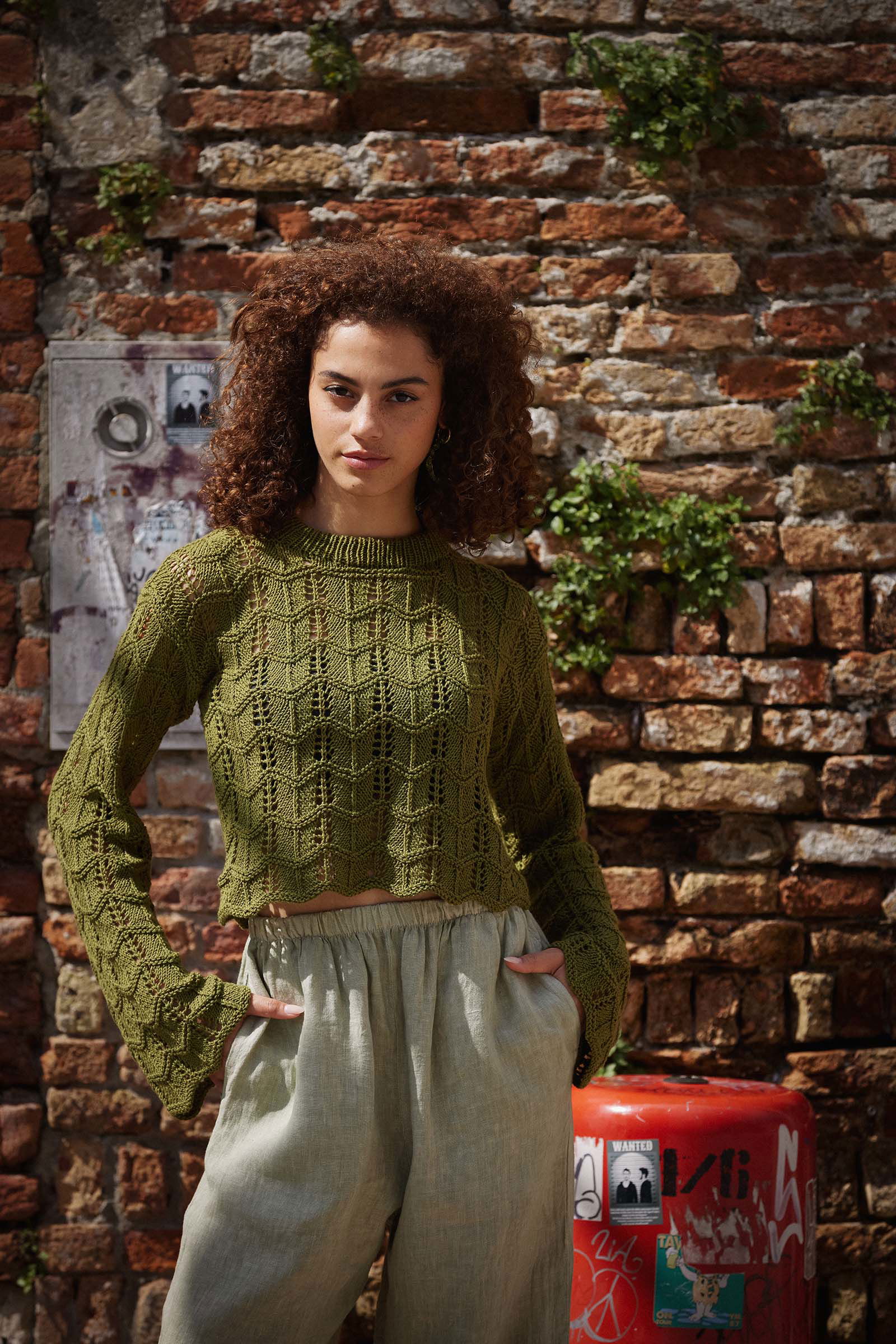Creëer jouw perfecte zomertrui met de korte damestrui Sweet Stitches, een ontwerp dat elegantie moeiteloos combineert met draagcomfort. Dit prachtige breiproject omarmt een verfijnde ajoursteek en een speels zigzagpatroon, resulterend in een luchtige en stijlvolle creatie. De wijde lange mouwen geven de trui een eigentijdse look, perfect voor een casual chique uitstraling of een verfijnde laagjeslook. Gebreid met Lang Yarns Sweet, geniet je van een unieke combinatie van natuurlijke vezels die zorgen voor een ongekend zacht gevoel en een prachtige valling.