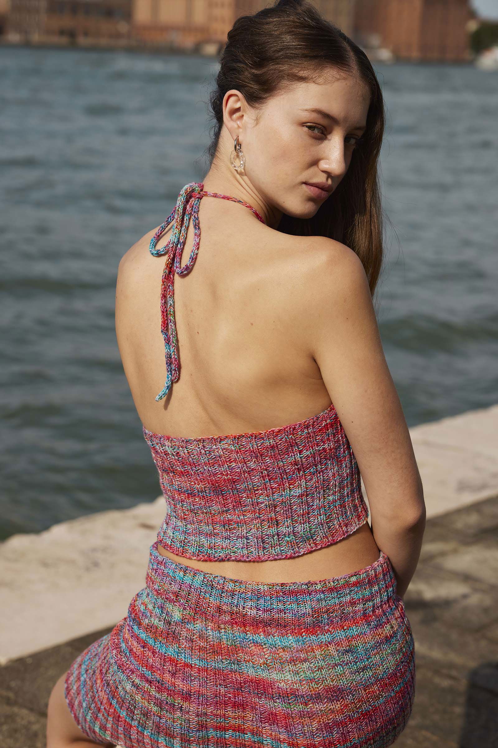 Dit patroon onthult hoe u zelf deze stijlvolle haltertop kunt breien. De Korte Haltertop Sirens Call wordt gekenmerkt door zijn eigentijdse snit en de prachtige ribbelsteek, die een subtiele textuur en structuur geeft aan het geheel. U leert de constructie van een kort topje met een verfijnd halskoordje. De techniek van het breien staat centraal, wat resulteert in een soepel vallend en comfortabel kledingstuk.