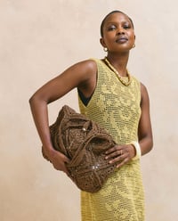 Phildar haakpatroon Helie, grote tas gehaakt in granny squares. Deze tas heeft zijn natuurlijke uitstraling te danken aan het garen Phil Raphia.