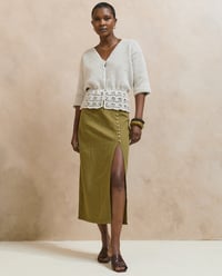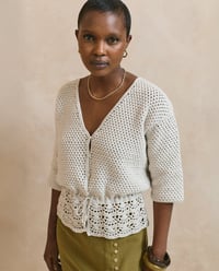 Phildar haakpatroon Heloïse, damesvest met v-hals en driekwart mouwen. Dit vest met golvend patroon aan de onderrand, is gehaakt van het garen Phil Cachemire coton. Dit garen geeft veel draagcomfort en geeft het vest een luxe uitstraling.