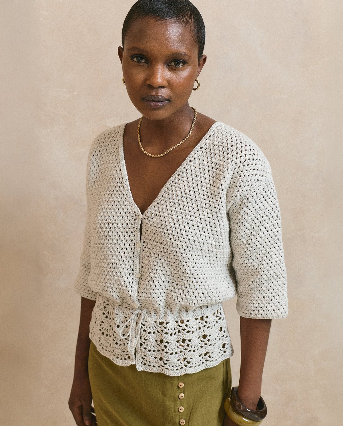 Haakpatroon Damesvest met aansnoer koordje in de taille