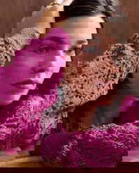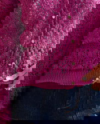Phildar breipatroon Calypso, damesvest met V-hals en knoopsluiting. Dit vest in ajour patroon is gemaakt van het garen Phil Soft Cotton, een garen met hoog draagcomfort.