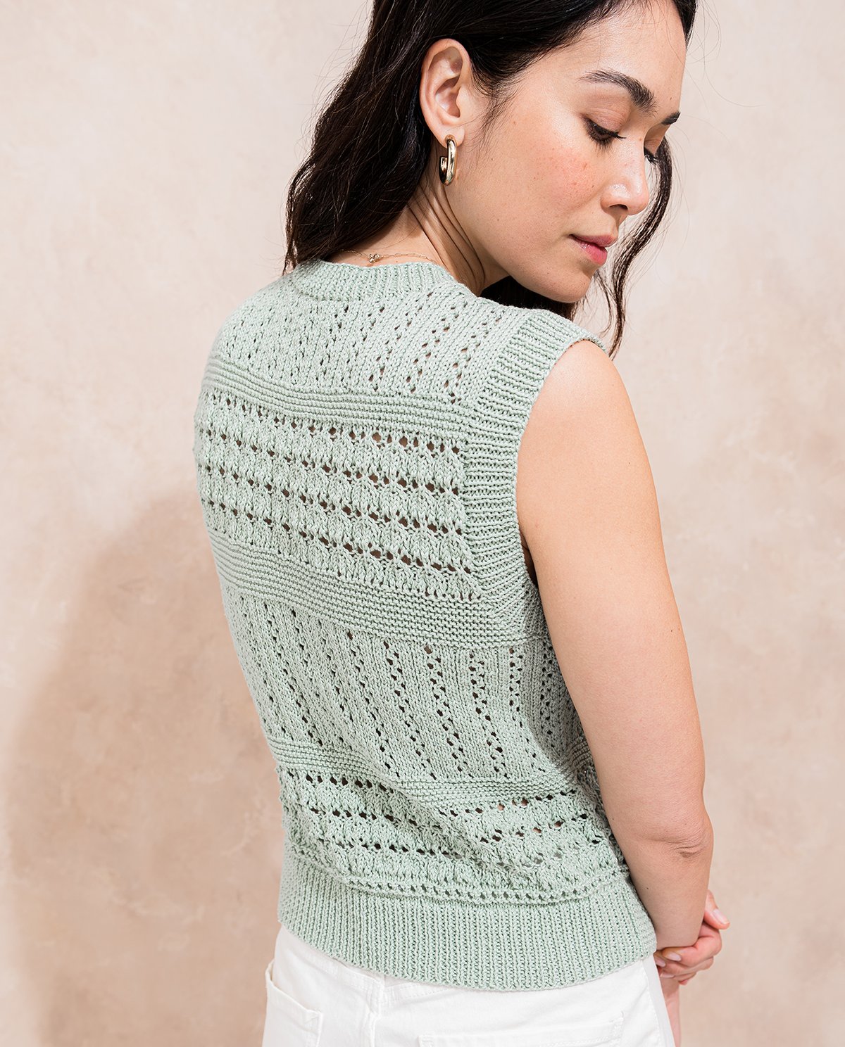 Breipatroon mouwlooze damestrui Leandre in ajourpatroon