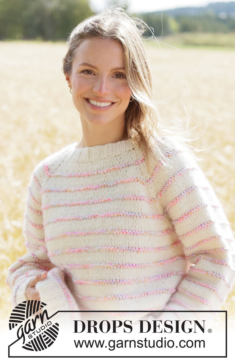 Sweet Sprinkles Sweater, een oversizede trui metraglanmouwen. De trui wordt naadloos van boven naar beneden gebreid, wat zorgt voor een comfortabele pasvorm. Het kenmerkende design ontstaat door de afwisseling van naturelkleurige banen met vrolijke, gespikkelde strepen, gebreid met de 'Vruchtenhagel' kleur. Dit breipatroon voor een top-down damestrui is beschikbaar in maten XS tot XXXL en wordt gemaakt op rondbreinaalden van 4.5 mm en 6 mm. De combinatie van stevige wol en zijdezachte alpaca maakt dit een genot om te dragen.