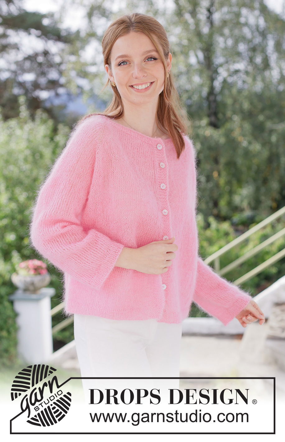 Damesvest Persephone Cardigan, is heerlijk licht en luchtig dankzij twee draden DROPS Kid-Silk, een luxe garen van 75% mohair en 25% zijde. Dit elegante, van boven naar beneden gebreide vest wordt naadloos gevormd met een klassieke raglanpas. Het patroon is beschikbaar in een brede maatreeks van XS tot XXXL en wordt in een soepele tricotsteek gebreid, afgewisseld met boordsteek voor een perfecte pasvorm.