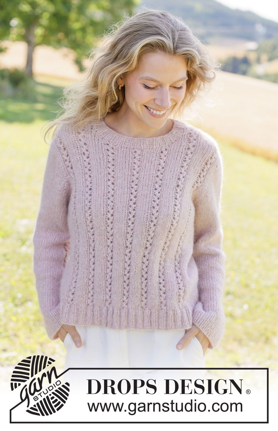 Breipatroon Top-down trui met kantpatroon in zachte DROPS Air