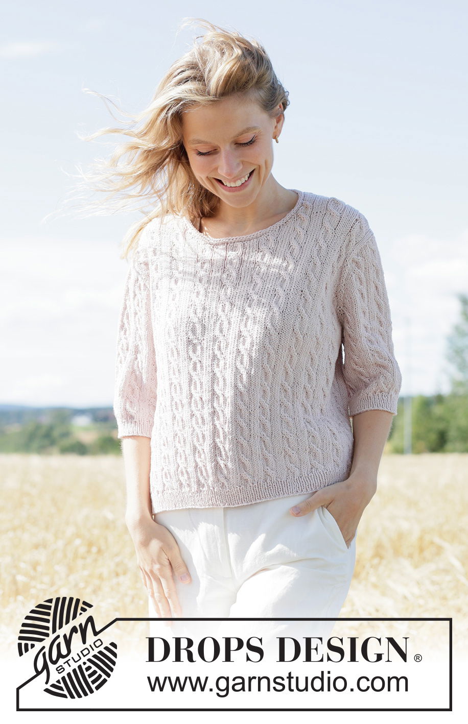 Breipatroon Top-down zomertrui met kabels en korte mouwen