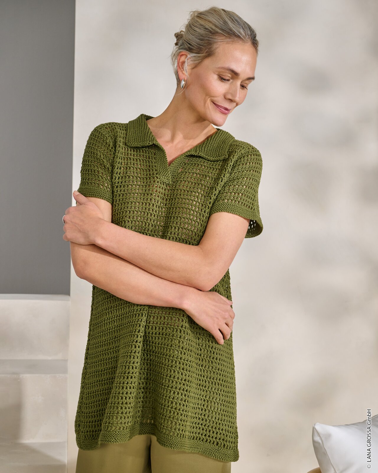 gehaakte zomerse trui. Dit unieke ontwerp combineert de elegantie van een polokraag met de ambachtelijke charme van haakwerk. De verrassende toevoeging van