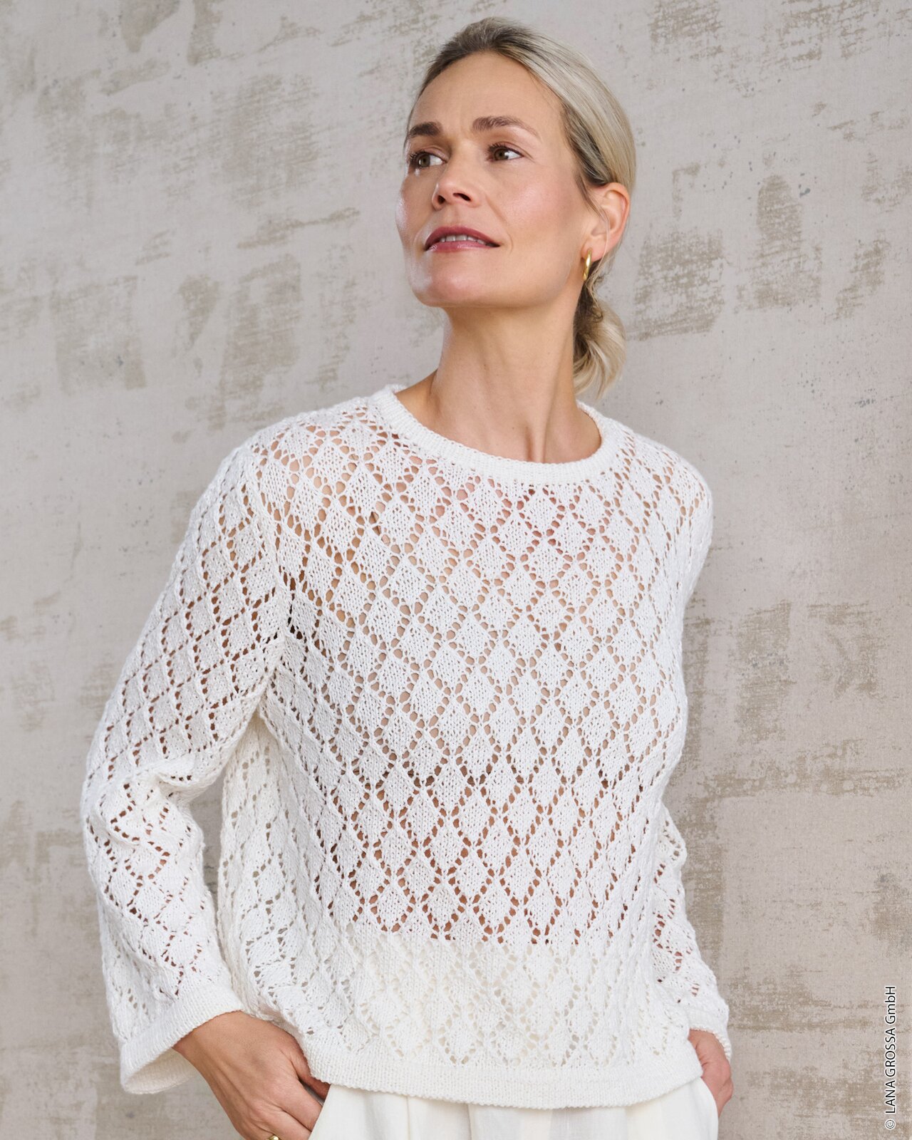 Voor dit patroon is gekozen voor Lana Grossa Landlust Sommerseide, een garen dat luxe en comfort perfect combineert. Deze bijzondere mix van 50% zijde en 50% katoen zorgt niet alleen voor een natuurlijke uitstraling, maar ook voor een heerlijk zacht en comfortabel gevoel op de huid. De licht getwijnde draad draagt bij aan de souplesse van de stof en maakt het garen uitermate geschikt voor zomerkleding en accessoires. De matte en licht gemêleerde structuur van de draad benadrukt de verfijnde aard van het ruitpatroon en geeft uw trui een exclusieve afwerking.