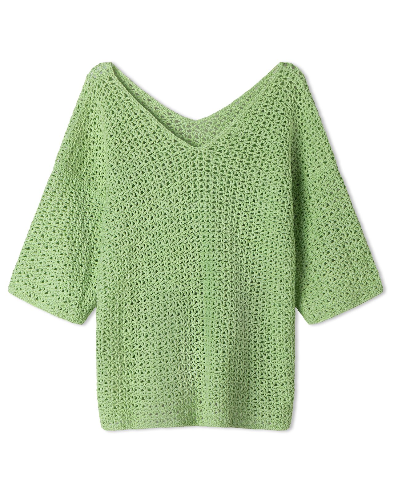 Ontdek de kunst van het haken en creëer een uitzonderlijk kledingstuk: een damestrui met een elegant wijde V-hals. Dit unieke patroon resulteert in een luchtig shirt met driekwart mouwen, ideaal voor de warmere dagen maar ook stijlvol in andere seizoenen. De gehaakte details en het fantasiepatroon geven deze trui een exclusieve uitstraling, een ware blikvanger in elke garderobe.