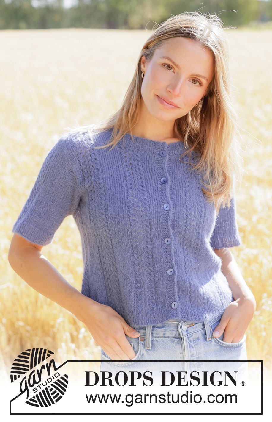 Lilac Serenade Cardigan wordt van boven naar beneden (top-down) gebreid, waardoor je de lengte eenvoudig kunt aanpassen. De korte mouwen en het luchtige garen, een luxe mix van