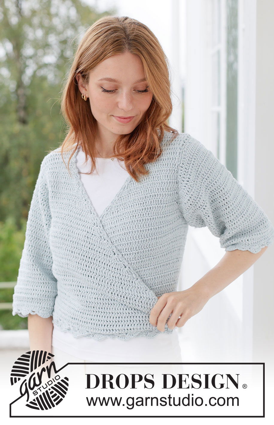 Haakpatroon wikkelvest met driekwart mouw in DROPS Belle