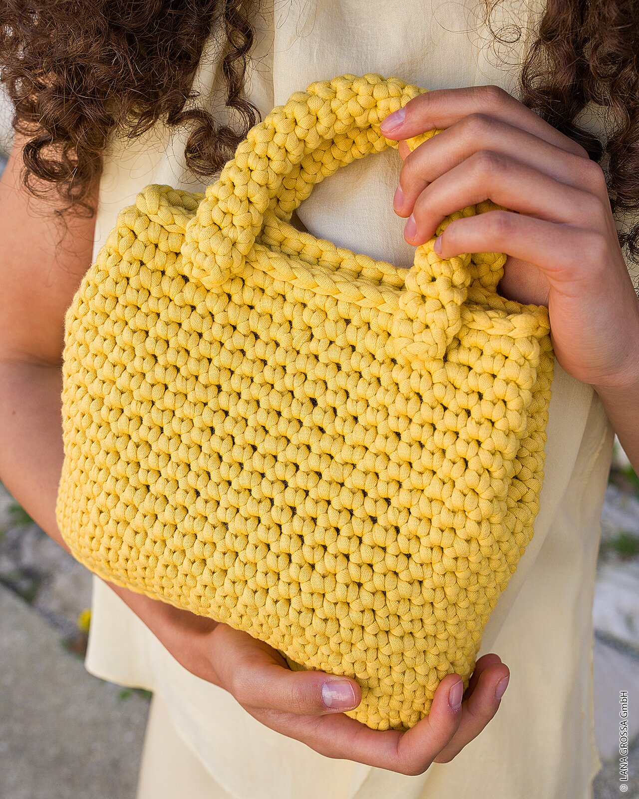 Voor dit project is gekozen voor Lana Grossa The Tube, een garen dat uitblinkt in zowel uitstraling als functionaliteit. Deze dikke tricotdraad is samengesteld uit katoen en nylon, wat een ideale combinatie is voor accessoires die stevigheid en een zekere flexibiliteit vereisen. Het katoenaandeel zorgt voor ademend vermogen en een natuurlijke touch, terwijl het nylon bijdraagt aan de duurzaamheid, vormvastheid en een lichte glans. Lana Grossa The Tube voelt prettig aan tijdens het haken en resulteert in een tas met een luxe, gestructureerde uitstraling die lang mooi blijft.