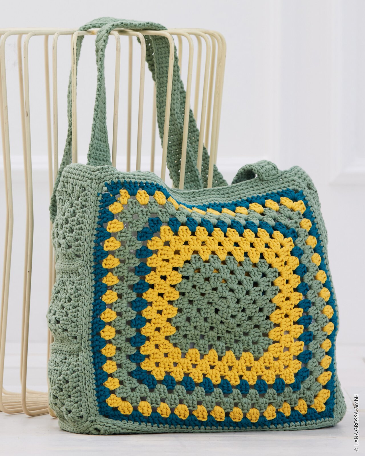 Voor deze vierkante brede tas is gekozen voor Lana Grossa The Tube Fine, een uitstekende tricotdraad die comfort en functionaliteit combineert. Deze bijzondere draad, een mix van hoogwaardig katoen en sterk nylon, staat garant voor een tas die zowel zacht aanvoelt als bestand is tegen dagelijks gebruik. De unieke buisvormige structuur van de draad geeft uw haakwerk een mooie, gelijkmatige textuur en extra volume, wat essentieel is voor de stevigheid van een tas.