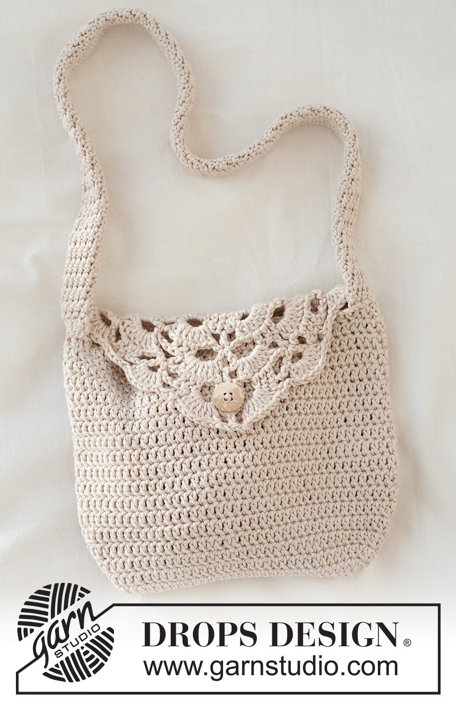 Gehaakt met een prachtig waaierpatroon op de flap, is dit een elegant en praktisch accessoire. Dit tasje wordt gemaakt met DROPS Muskat, een 100% gemerceriseerd Egyptisch katoen dat zorgt voor een subtiele glans en een stevige structuur. Het patroon, Treasure Keeper Bag, wordt van boven naar beneden gehaakt, beginnend met de decoratieve flap. Vervolgens haak je de rest van het tasje naadloos in de rondte met stokjes. Met een afzonderlijk gehaakt handvat en een simpele knoopsluiting is dit de perfecte gehaakte schoudertas voor je belangrijkste spulletjes.