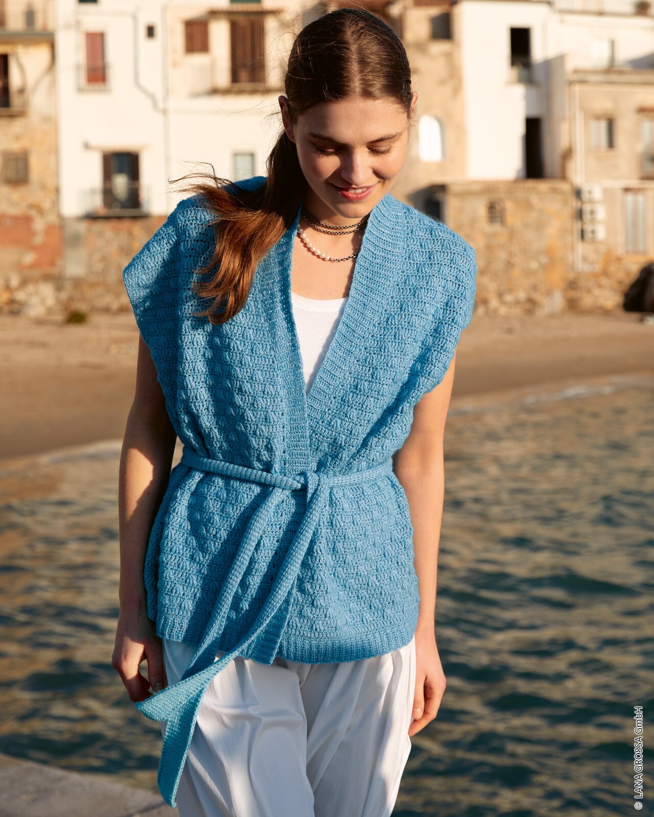 Ontdek het plezier van het haken van dit elegante mouwloze zomertruitje, compleet met een stijlvolle ceintuur die je taille accentueert. Dit is een perfect project voor iedereen die houdt van Tunisch haken en op zoek is naar een uniek kledingstuk voor de warmere dagen. Werk met Lana Grossa Ecopuno en ervaar de zachte textuur en de prachtige, subtiel verwassen uitstraling die je project een onderscheidende charme geeft.