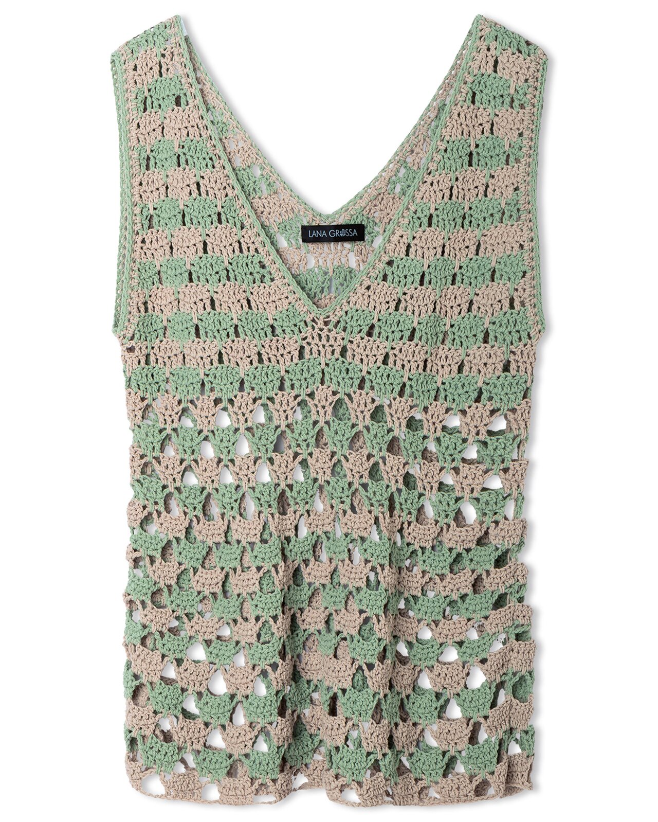 Voor dit project gebruiken we Lana Grossa Gioia, een garen dat uitblinkt in zowel comfort als esthetiek. De samenstelling en structuur van Gioia maken het een ideale keuze voor delicate haakprojecten, zoals dit dameshemdje. Dit garen garandeert een regelmatig en duidelijk stekenbeeld, wat cruciaal is voor het ajourpatroon.