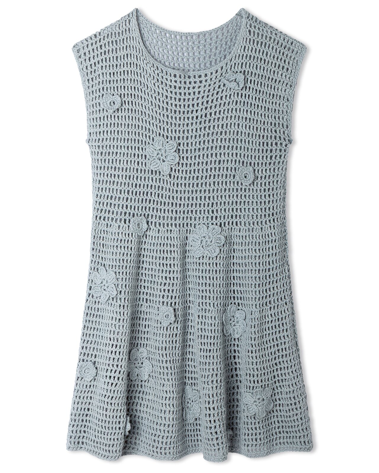 Creëer een onmisbaar item voor de warmere dagen: een prachtig mouwloos jurkje met een elegante wijde rok. Dit zomerse ontwerp onderscheidt zich door een unieke hangende schouderlijn en subtiele, gehaakte bloemen die een speelse touch toevoegen. Perfect voor elke gelegenheid, van een relaxte dag op het strand tot een zomerse avond uit.