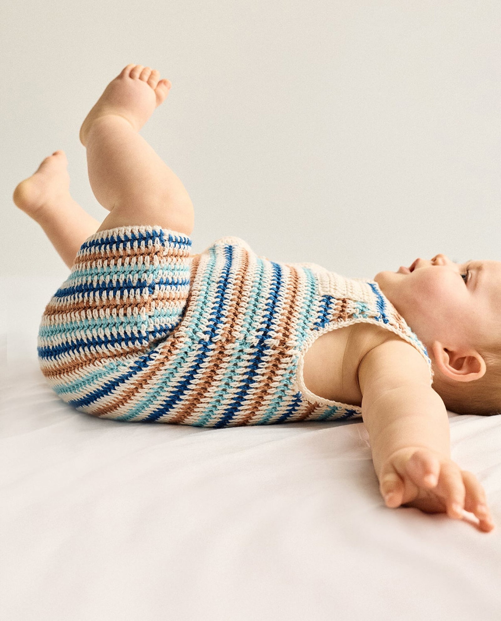 Ontdek het plezier van het haken van de gestreepte combishort Lubin, een charmant mouwloos speelpakje met korte pijpjes dat perfect is voor baby's en peuters. Dit patroon combineert stijl met draagcomfort, ideaal voor de tere huid van de kleintjes. Begin vandaag nog aan dit leuke project en creëer een uniek handgemaakt item.