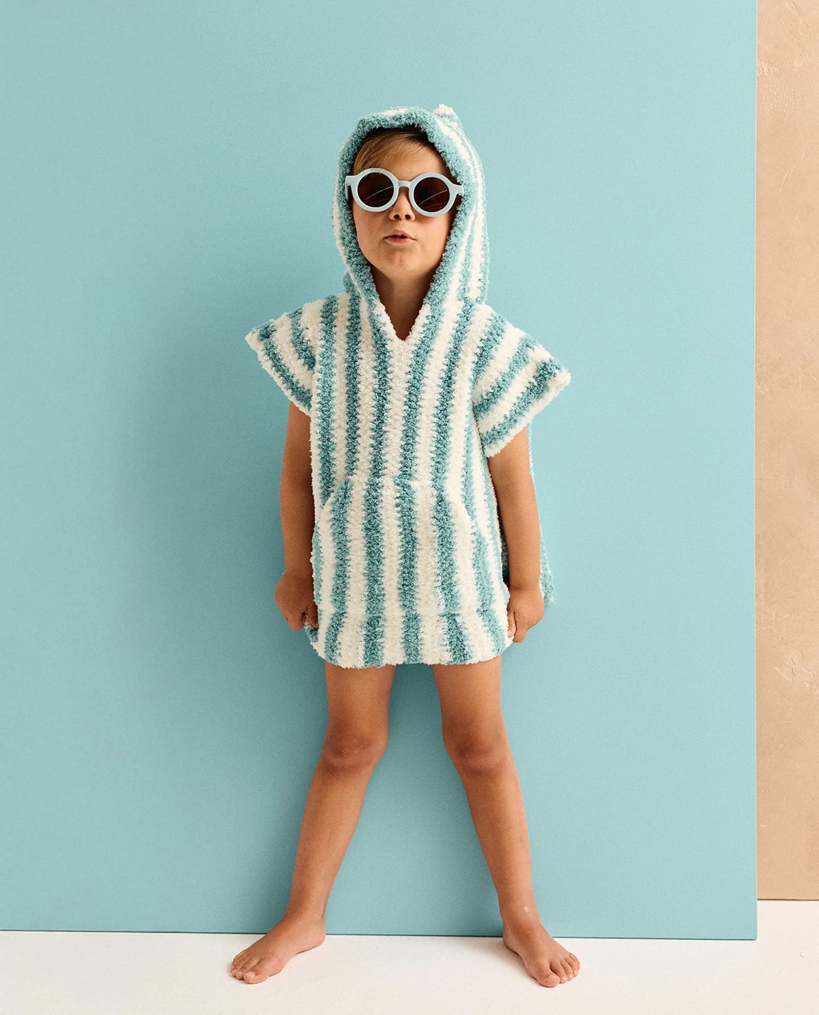 Ontdek het plezier van haken met dit patroon voor een charmante verticaal gestreepte kinderponcho. Dit veelzijdige kledingstuk is ideaal voor kinderen, te dragen als een comfortabele mouwloze trui op het strand, bij het zwembad, of voor ontspannen momenten thuis op de bank. Met de unieke eigenschappen van Phildar Phil Douce creëer je een item dat zowel stijlvol als heerlijk zacht en warm is.