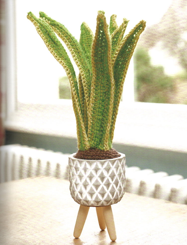 Verrijk uw interieur met een zelfgehaakte Sanseveria in pot, een blijvende blikvanger zonder water geven. Deze populaire kamerplant, bekend om zijn lange opstaande bladeren en ook wel vrouwentong of slangenplant genoemd, transformeert van een natuurlijk element naar een kunstzinnig haakproject. Dit patroon combineert de charme van botanische vormen met de duurzaamheid van handwerk, ideaal voor de liefhebber van unieke interieurdecoratie.