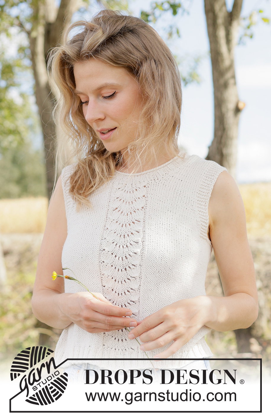 Gebreid met een elegant golfpatroon aan de voorzijde, heeft deze top een verfijnde, zomerse uitstraling. Het patroon wordt van boven naar beneden gewerkt met het heerlijk zachte DROPS Belle, een garen van katoen, viscose en linnen dat licht en luchtig aanvoelt. Dit ontwerp, met de naam Summer Fan Top, heeft een unieke constructie: de schouders en panden worden eerst apart heen en weer gebreid en daarna samengevoegd om het lijf naadloos in de rondte te breien. De afwerking met een punnikrand langs de armsgaten geeft een strakke en professionele look. Het patroon is beschikbaar in een brede reeks maten, van XS tot XXXL, en wordt afgewerkt met een mooie boordsteek rond de hals.
