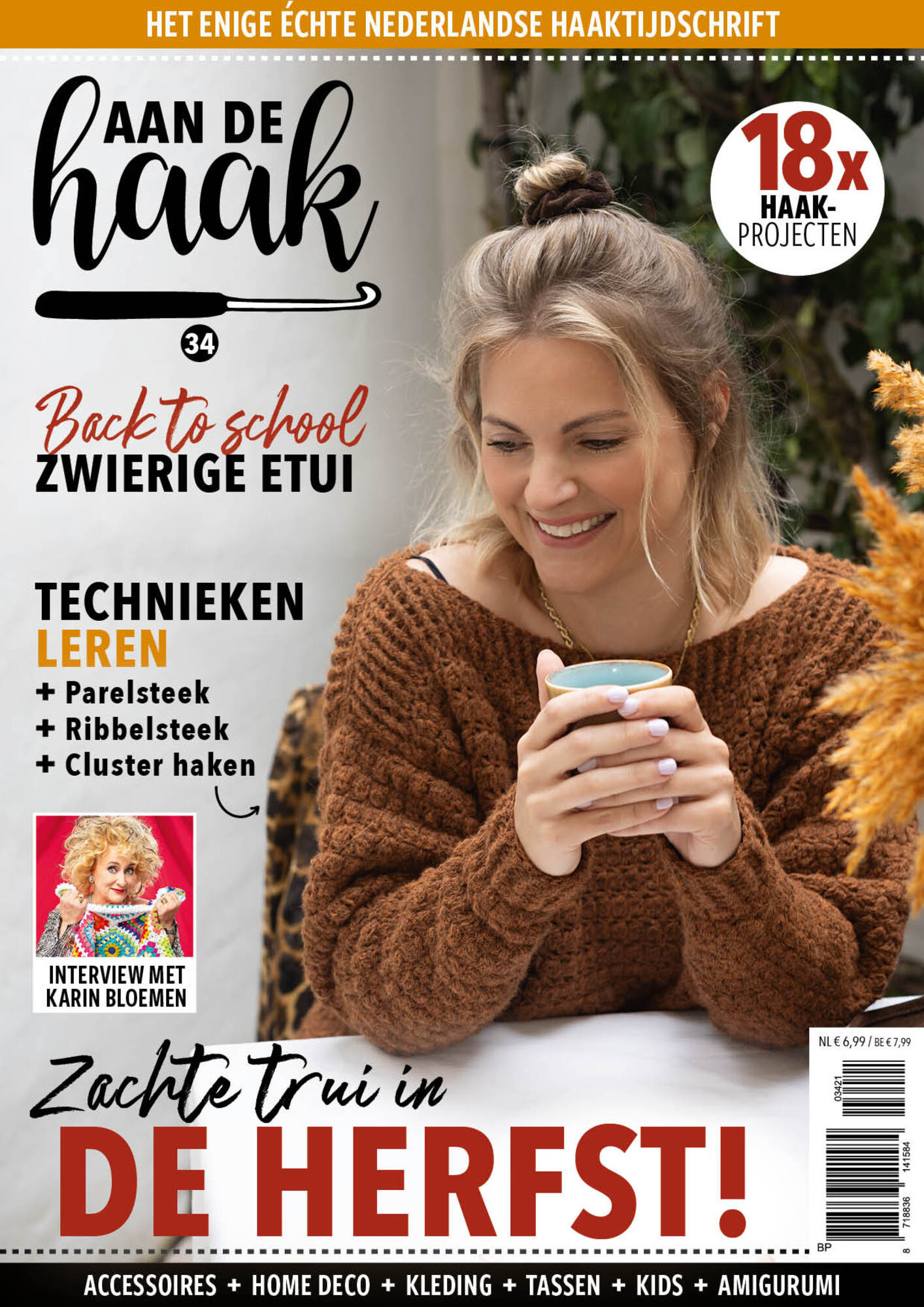 Aan de haak 34 is een tijdschrift met prachtige haakprojecten, rammelaar, poncho, kussen en nog veel meer
